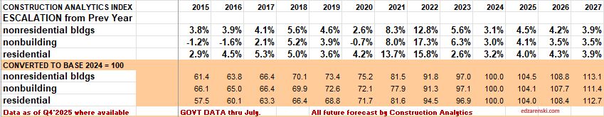 Final Demand pricing for Nonres Bldgs holding down at 2% or lower. Construction Analytics inflation rate for 2025, which includes inputs from eight sources, is 4.4%.