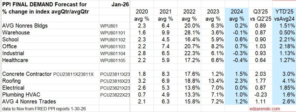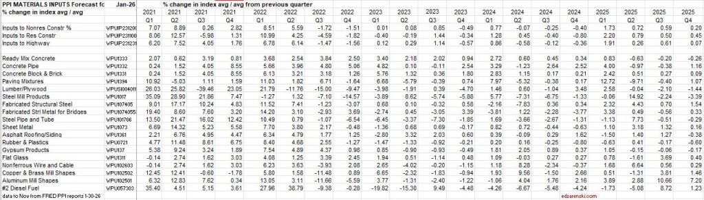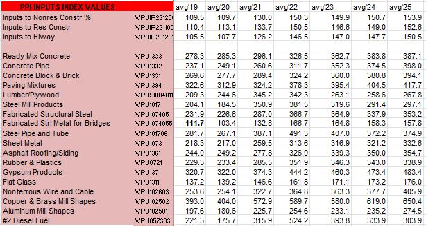 Comprehensive Construction Inflation 2025 text and graphics post on this blog Construction Inflation 2025 PPI updated 5-15