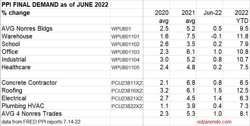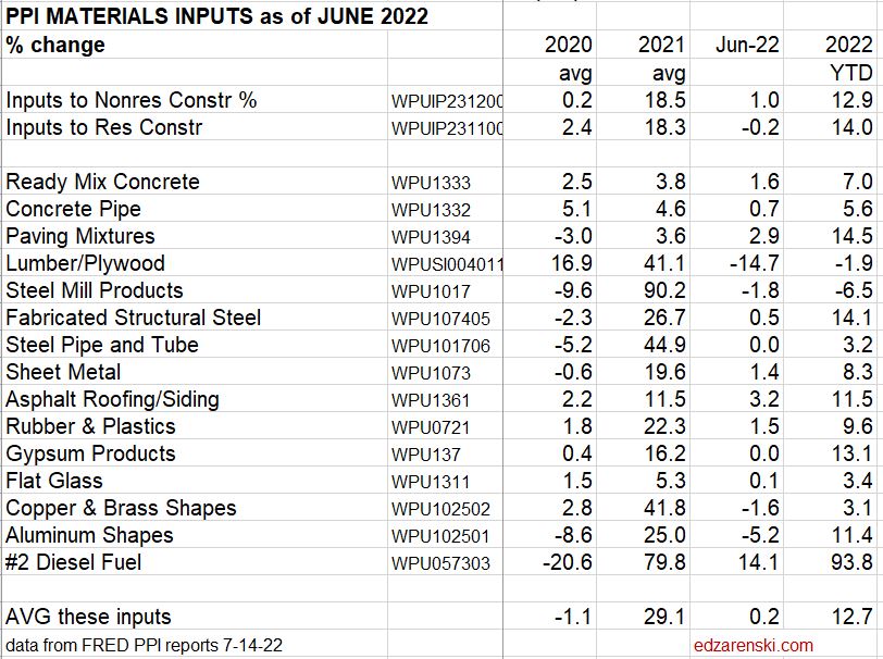 7-14-22 Construction PPI for JUNE Construction Inputs to residential down for thrid consecutive month.