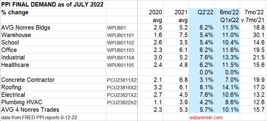 8-12-22 Construction PPI for JULY Construction Inputs to residential down for third consecutive month.