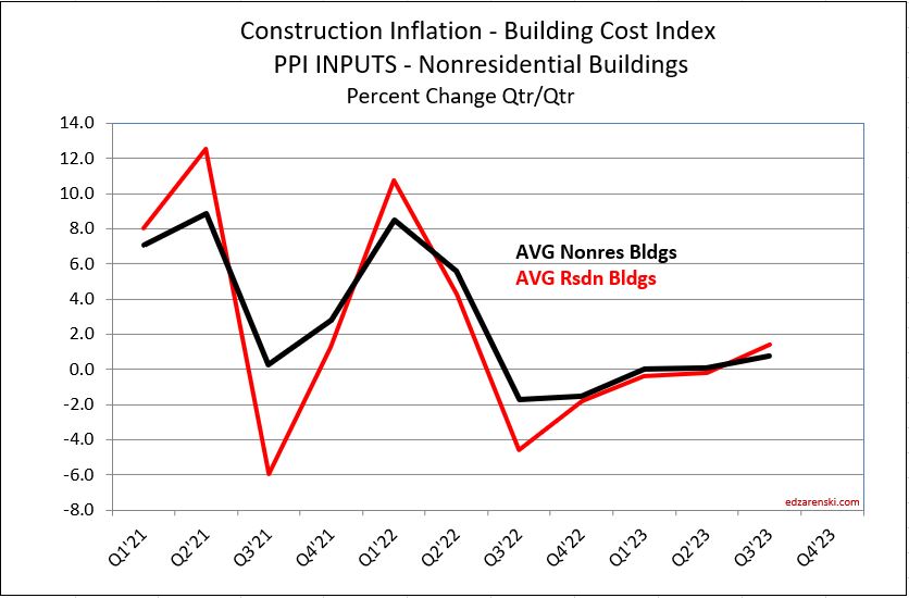 The Avg Nonres Bldgs is down 1.4% in the last two quarters. And yet, if we hold the current index constant, keep it at today’s rate for the rest of the year, then the avg for 2023 will be up 7.8% from the avg 2022. I think, based on downward trend in costs, it will be lower than that at year end.