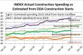 Residential spending $ includes about 35% renovations and improvements that has no units associated with the dollars, so that portion of $ should not be included in a comparison to housing starts.