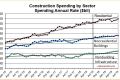 When you see graphics that present Residential, Nonresidential and Public spending all on the same plot, they are not additive. Only Residential and Nonresidential can be added to reach total spending. Public is a subset of Nonresidential, composed partly of Nonresidential Buildings (~40%) and partly Non-building Infrastructure (~60%), with a slight amount of residential.