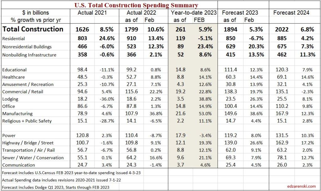 Click here for a formatted printable PDF Construction Spending Forecast – Summary Mar 2018