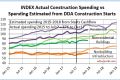 Cash flow is the best indicator of how much and when spending will occur. Cash flow from DDA starts gives a prediction over time of how spending from each month of previous starts will occur from all projects in backlog. Cash flow totals of all jobs can vary considerably from month to month, are not only driven by new jobs starting but also old jobs ending, and are heavily dependent on the type, size and duration of jobs.