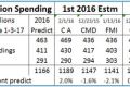 The table included here shows the predicted total 2016 spending compared to 1st 2016 estimates and current 2016 estimates provided from my data = CA (Construction Analytics) and from CMD (ConstructConnect) and FMI.