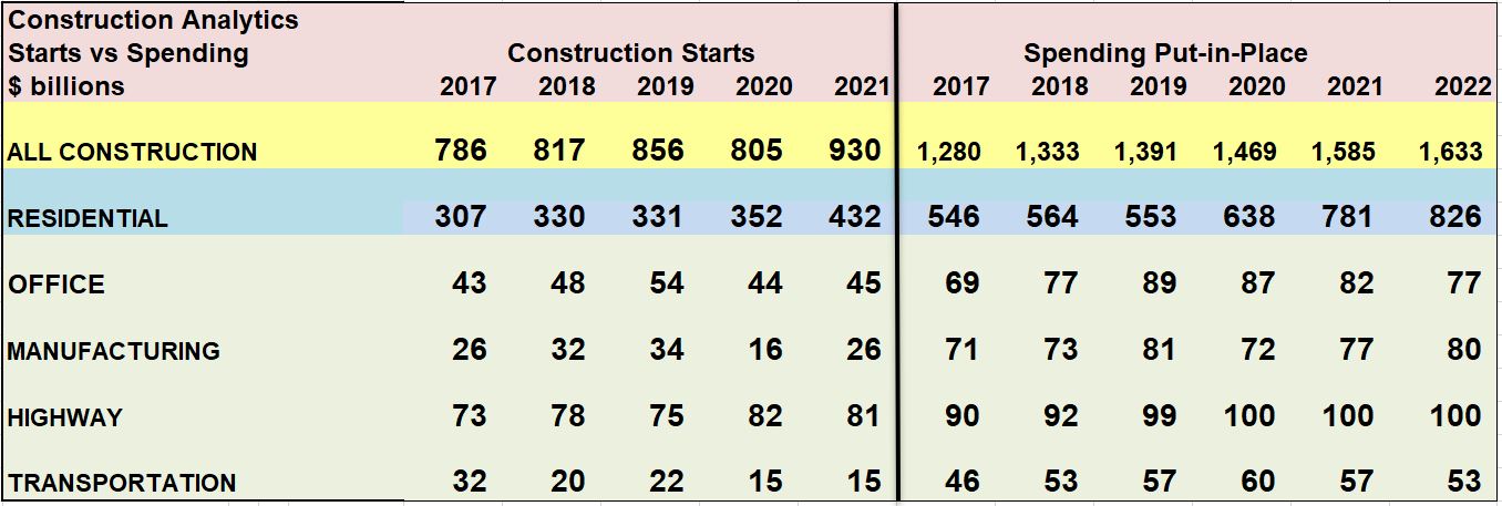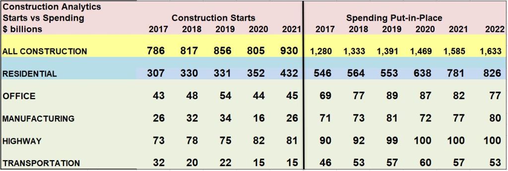It is remarkable that both total new construction starts and total construction spending are UP for 2021, but that needs further explanation.