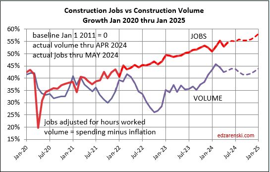 In 2024, construction volume may increase 6%. Don’t expect jobs to increase 6%.