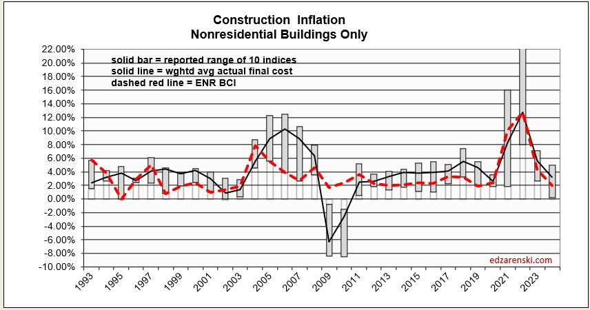 To properly inflation adjust the cost of construction, use a Final Cost Inflation Index. General construction cost and Input price indices that don’t track whole bldg final cost do not capture the full cost of escalation in construction.
