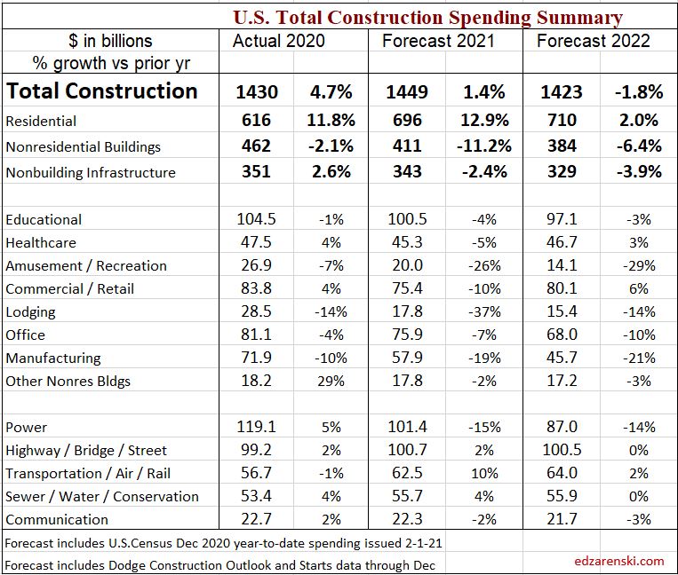 Initial Construction Outlook 2021, 2-5-21, based on data from: