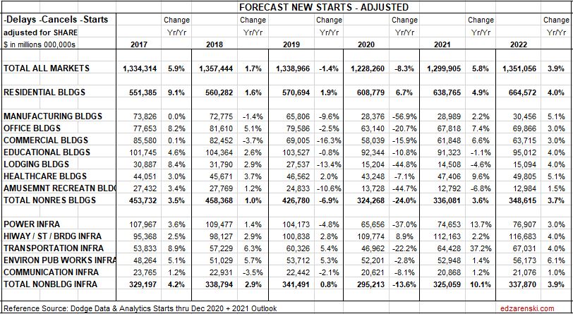 - Forecast includes Dodge Outlook 2021 and Dec construction starts 1-19-21